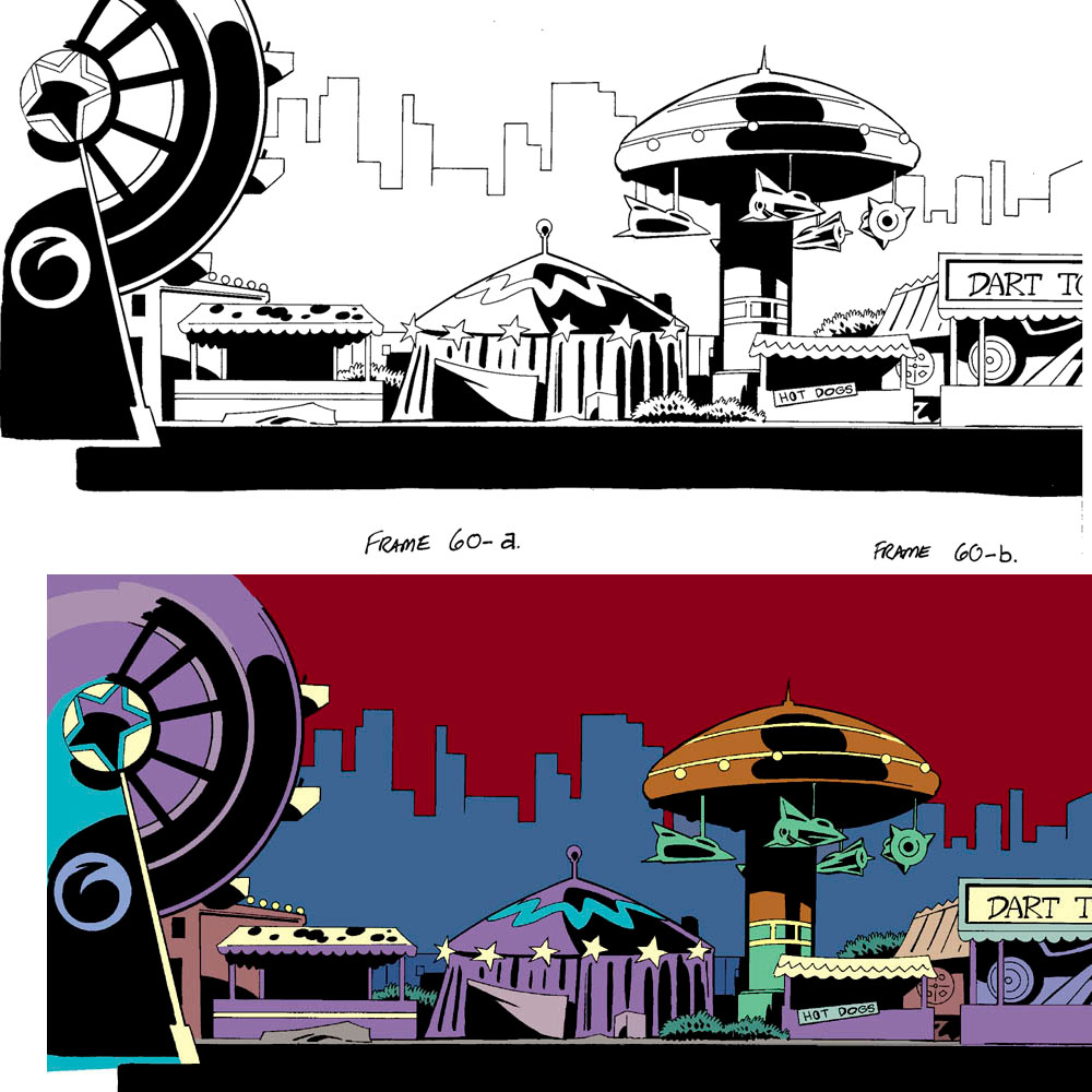 I directed the art team at DC Comics on how to create the necessary assets for the animation, with emphasis on re-usability and streamlining them. Initial color guides were provided and the final coloring was done in Flash.