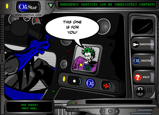 OnStar and DC Comics created a "state-of-the-art animated interactive comic for the Web" which let readers "shape their experience by using Personal Calling and OnStar Virtual Advisor at critical moments in the story."