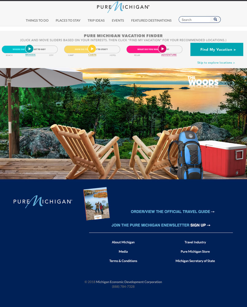 Pure Michigan wanted a fun an interactive way for visitors to choose their Michigan vacation destination.